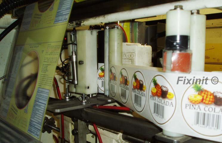 The labler has a supply and take up reel. The take up pulls the label web through.